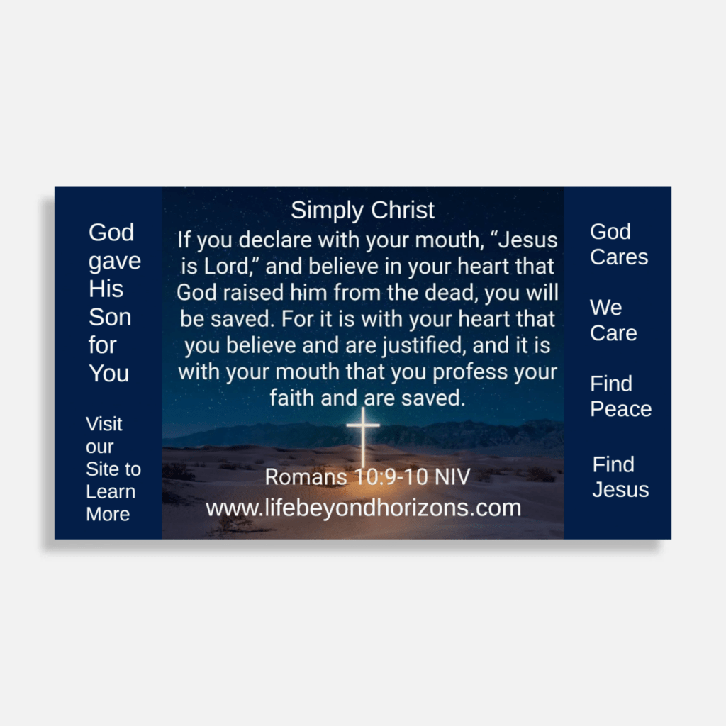 What is Community Missions? This is our shared calling from Jesus Christ, to share the Good News of Salvation throughout the world. Have you accepted Christ? If so, then let us help you share the good news in your own community with our free Simply Christ themed message of faith cards. These serve as an ice breaker in discussing Jesus and also as a gift of resources that points those that you encounter to our ministry for any additional questions or needs. Follow this link and request your cards today and remember to include a mailing address. Ministry Cards